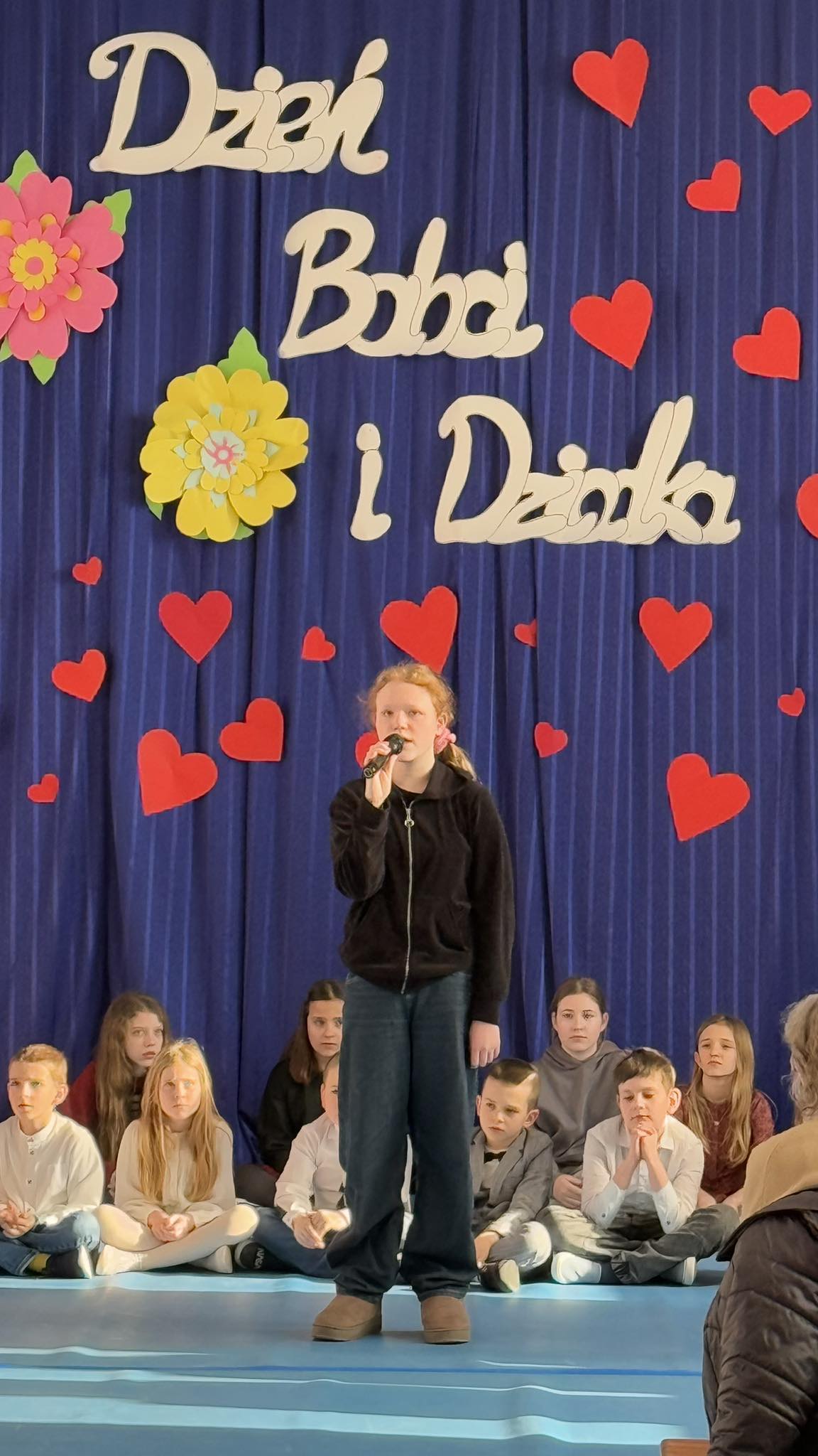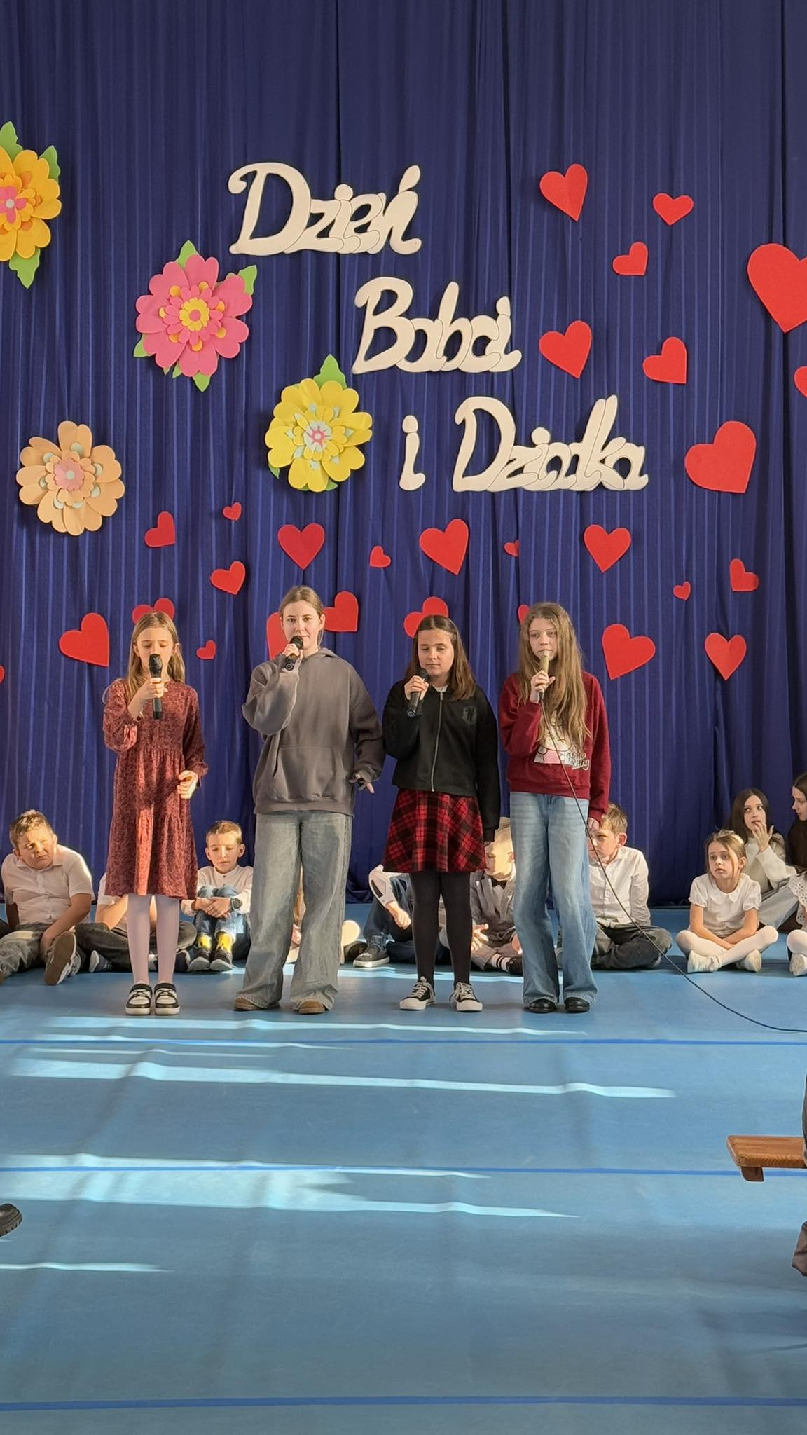 22 stycznia Babcie i Dziadkowie uczniów z klas 1-3 zostali zaproszenia na wyjątkowe spotkanie z okazji Ich święta. Wspólne świętowanie zaczęliśmy nostalgicznymi piosenkami w języku angielskim w wykonaniu uczennic z kl. 6b. Następnie zabawne piosenki i wierszyki zaprezentowali uczniowie z kl. 2a, 2b i 3b oraz oddziału przedszkolnego. Zaprezentował się także chór szkolny. Dopełnieniem uroczystości były prowadzone przez Samorząd Szkolny konkurencje sportowe dla babć, dziadków i ich wnuków oraz sesja zdjęciowa na tle tematycznej dekoracji. Spotkaniu towarzyszyło mnóstwo wzruszeń i burza oklasków po każdym występie.