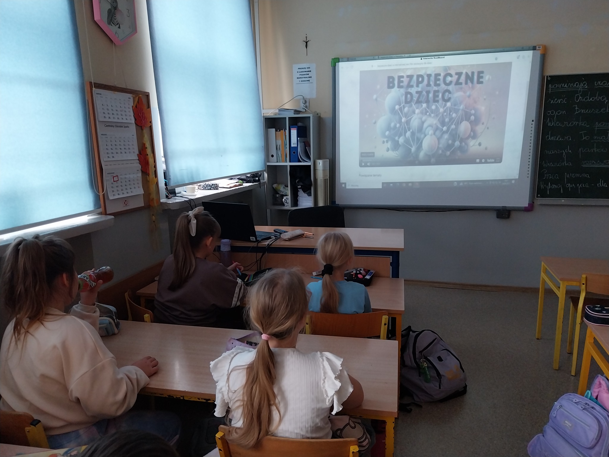 30 września 2025 r. w kolejnym dniu Tygodnia o przeciwdziałaniu przemocy rówieśniczej uczniowie klas 0 – 3 wzięli udział w zajęciach edukacyjnych „Bezpieczna sieć”. Oglądali film pt. „Bezpieczne dzieci w internetowej sieci”.