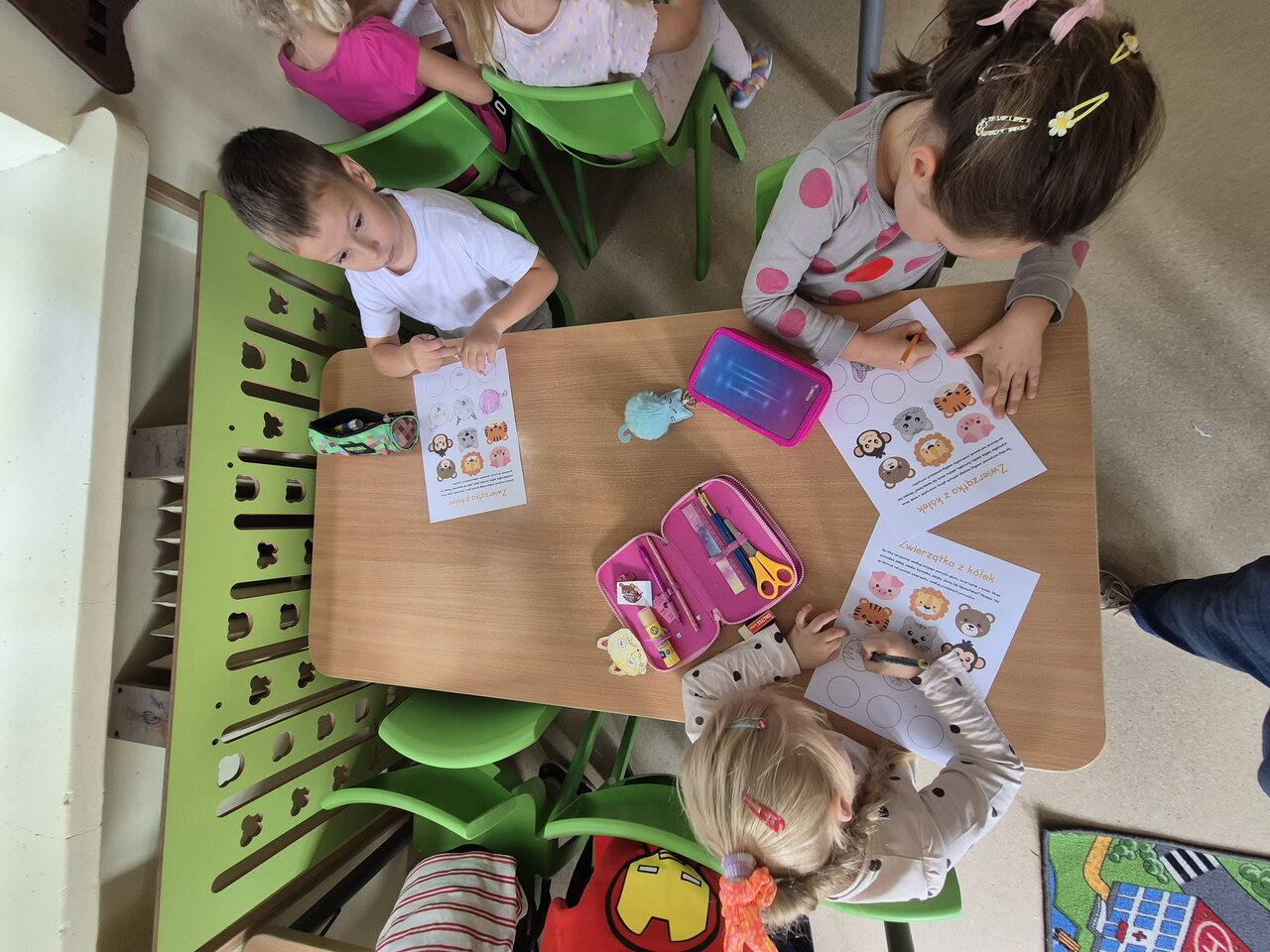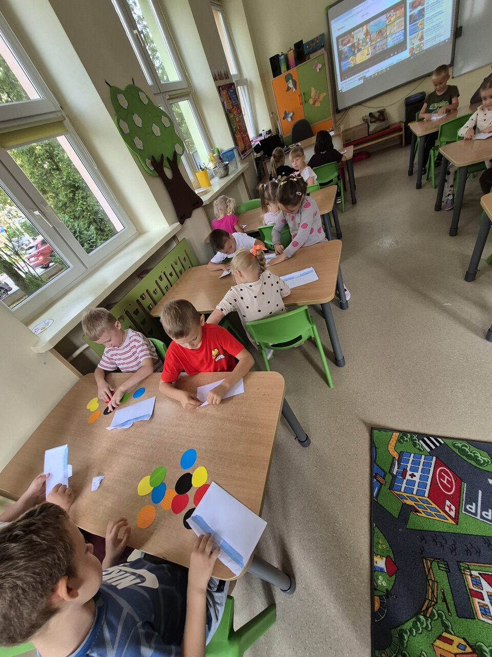 Z okazji Dnia Kropki dzieci z oddziału przedszkolnego poznały historię tego wyjątkowego dnia, odkrywając jego znaczenie i przesłanie, a następnie wzięły udział w zabawie w poszukiwanie zaginionych kropek, rozwijając spostrzegawczość i współpracę. Kolejnym etapem było tworzenie własnych obrazków z kropek, co pozwoliło im ćwiczyć wyobraźnię i zdolności plastyczne. Na zakończenie nadały kropkom nowe życie, zamieniając je w zwierzęta, łącząc sztukę z fantazją i radością tworzenia. Dzięki tym działaniom dzieci rozwijały kreatywność, wiarę we własne możliwości oraz umiejętność twórczego myślenia.
