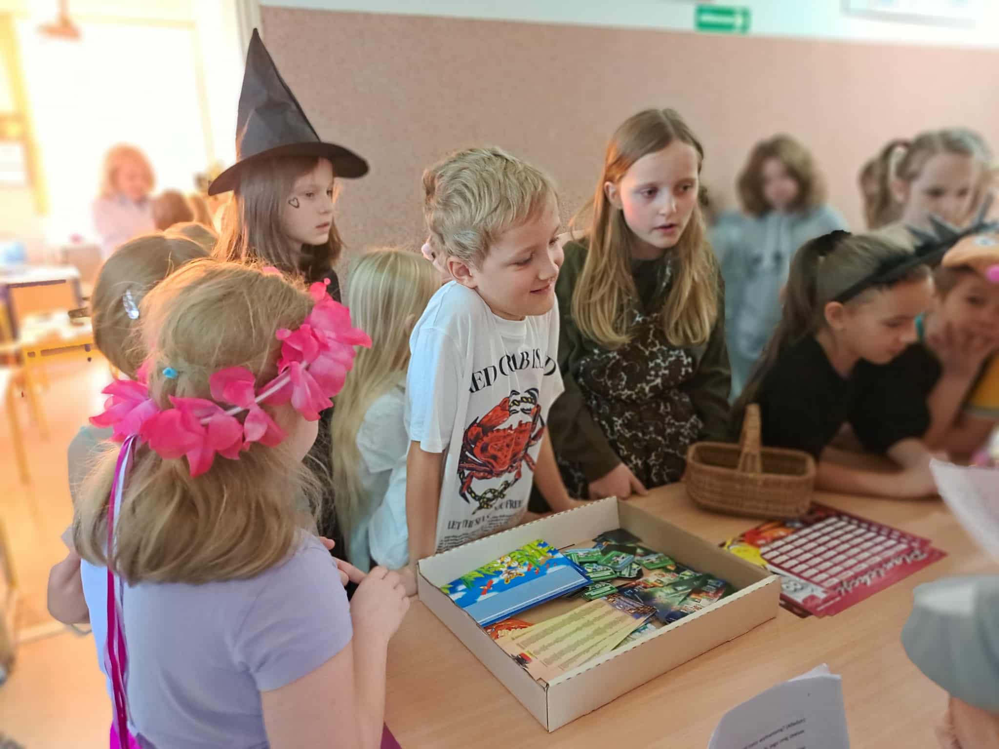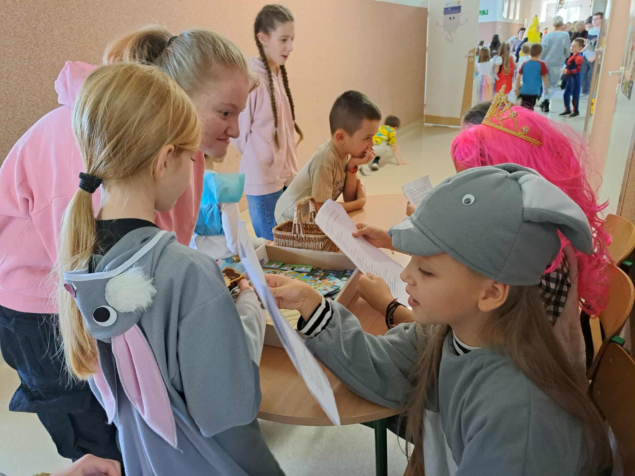 Uczniowie mieli okazję wziąć udział w konkursach zorganizowanych przez bibliotekę szkolną, dotyczących znajomości wybranych baśni i bajeczek, które podczas przerw przeprowadziły uczennice z klasy 4a.