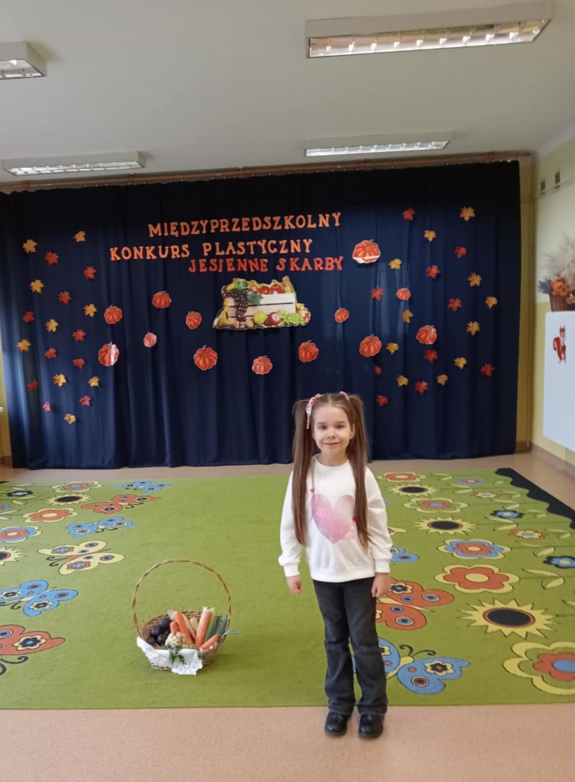 04. grudnia 2025 roku w Przedszkolu Nr 11 w Tomaszowie Mazowieckim Nadia Lesiak z oddziału przedszkolnego odebrała nagrodę za zajęcie drugiego miejsca w międzyprzedszkolnym Konkursie Plastycznym "Jesienne Skarby". Serdecznie gratulujemy i życzymy dalszych sukcesów.