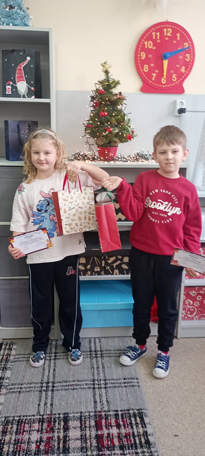Z okazji mikołajek uczniowie klasy pierwszej wzięli udział w Międzyszkolnym Konkursie Plastycznym „Święty Mikołaj z Miry”. Celem konkursu było przybliżenie postaci Świętego Mikołaja biskupa z Miry oraz propagowanie wrażliwości na potrzeby drugiego człowieka. Rozstrzygnięcie konkursu miało miejsce 16 grudnia w radosnej, świątecznej atmosferze. Komisja konkursowa wyłoniła laureatów, wśród nich między innymi I miejsce zajął Igor Śliwiński, II miejsce Martynka Łyszkowicz.