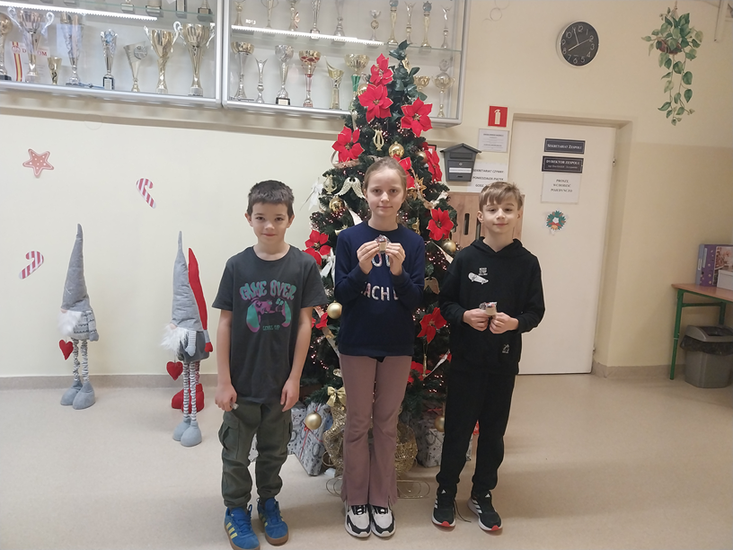 I miejsce w szkolnym etapie konkursu zajęli: Maria Lubicka, Tymon Bystroński i Kacper Janeczek