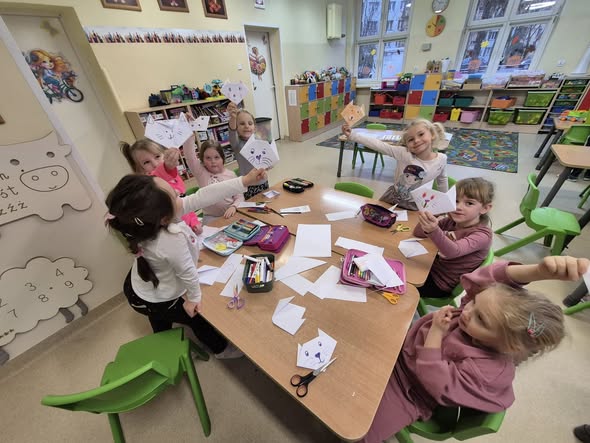 Czekając na rodziców dzieci z Tęczowej Akademii zdobywały nowe umiejętności, tworząc kolorowe zwierzątka z origami - nuda nam tutaj nie grozi.