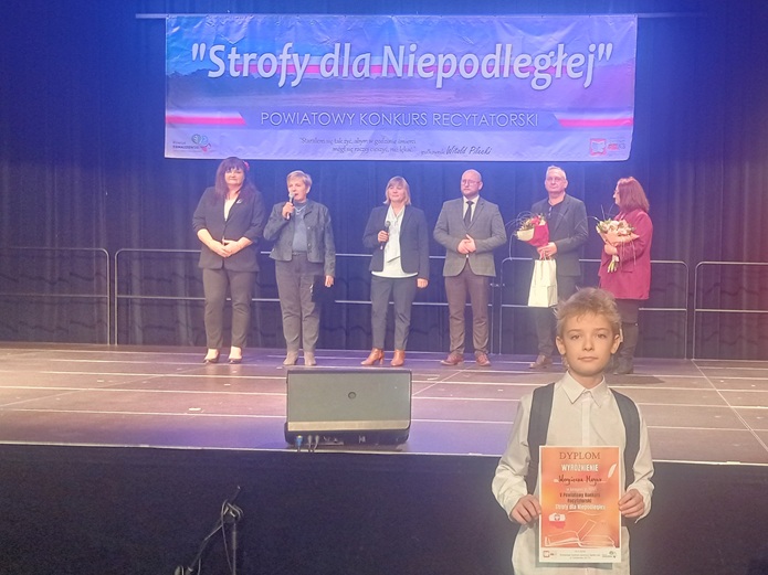 Miło nam poinformować, że Wojciech Majda z kl. 6b zdobył wyróżnienie w V Konkursie Recytatorskim Strofy dla Niepodległej, który miał swój powiatowy finał w PCASie 13 listopada.