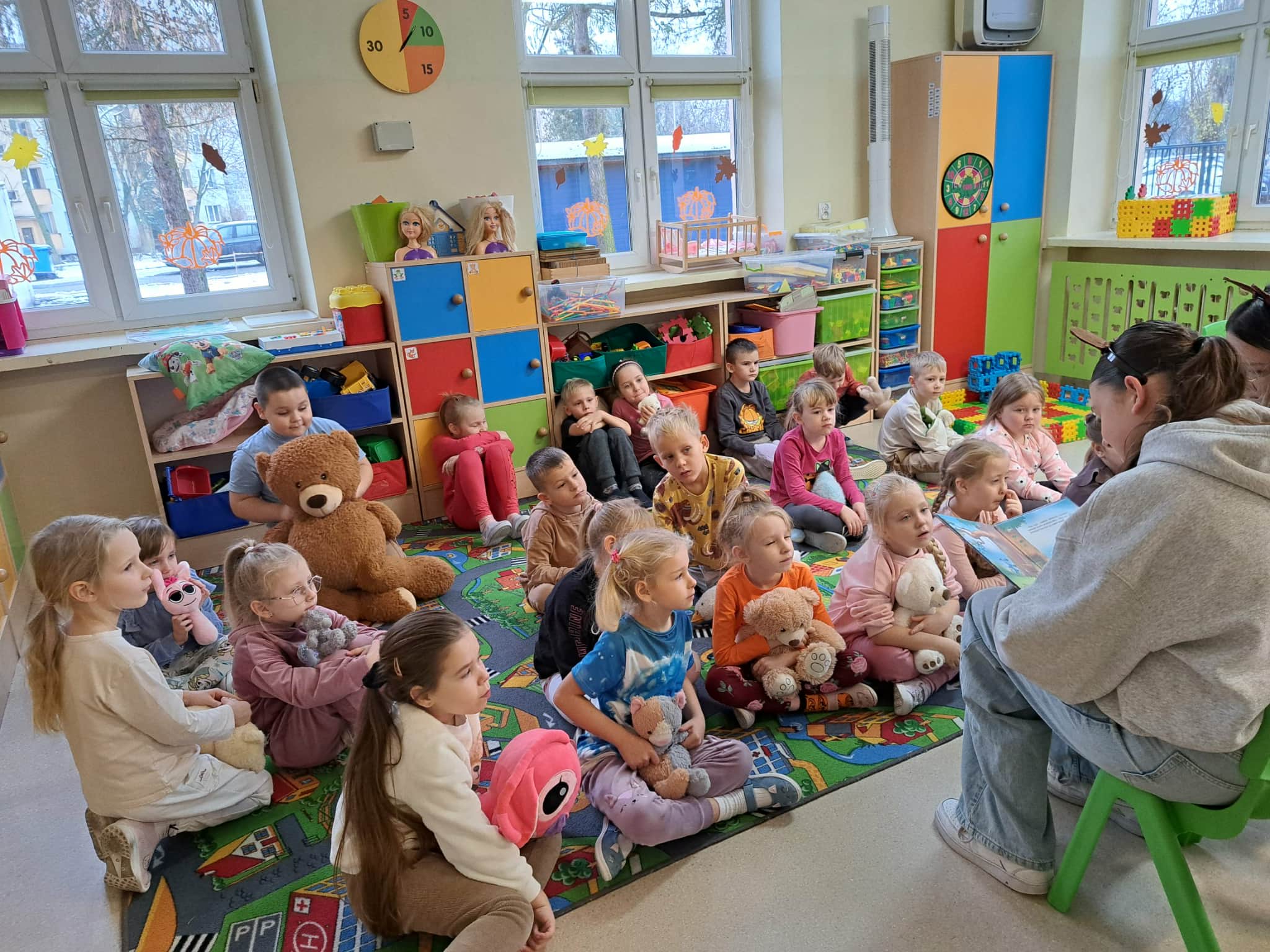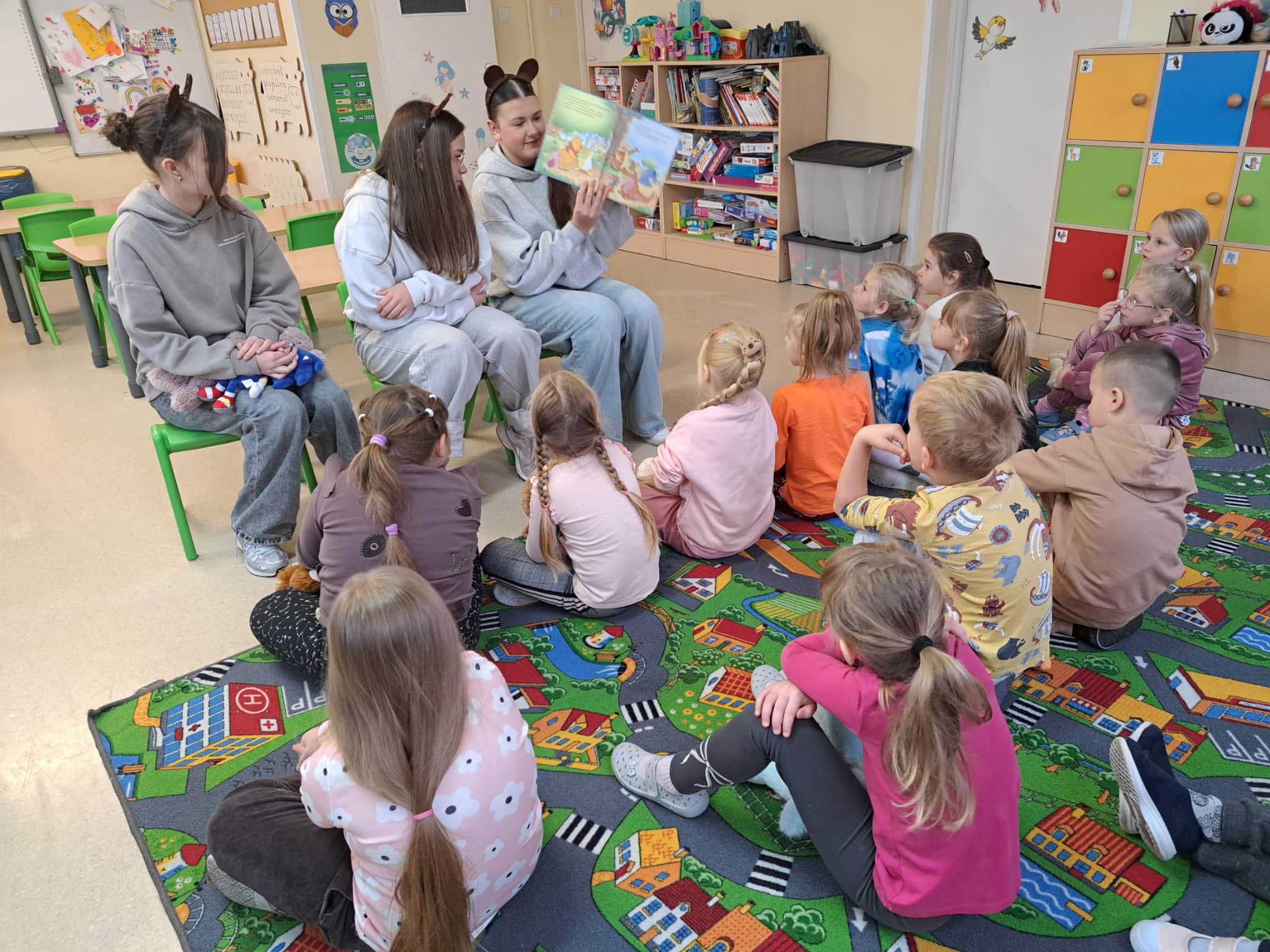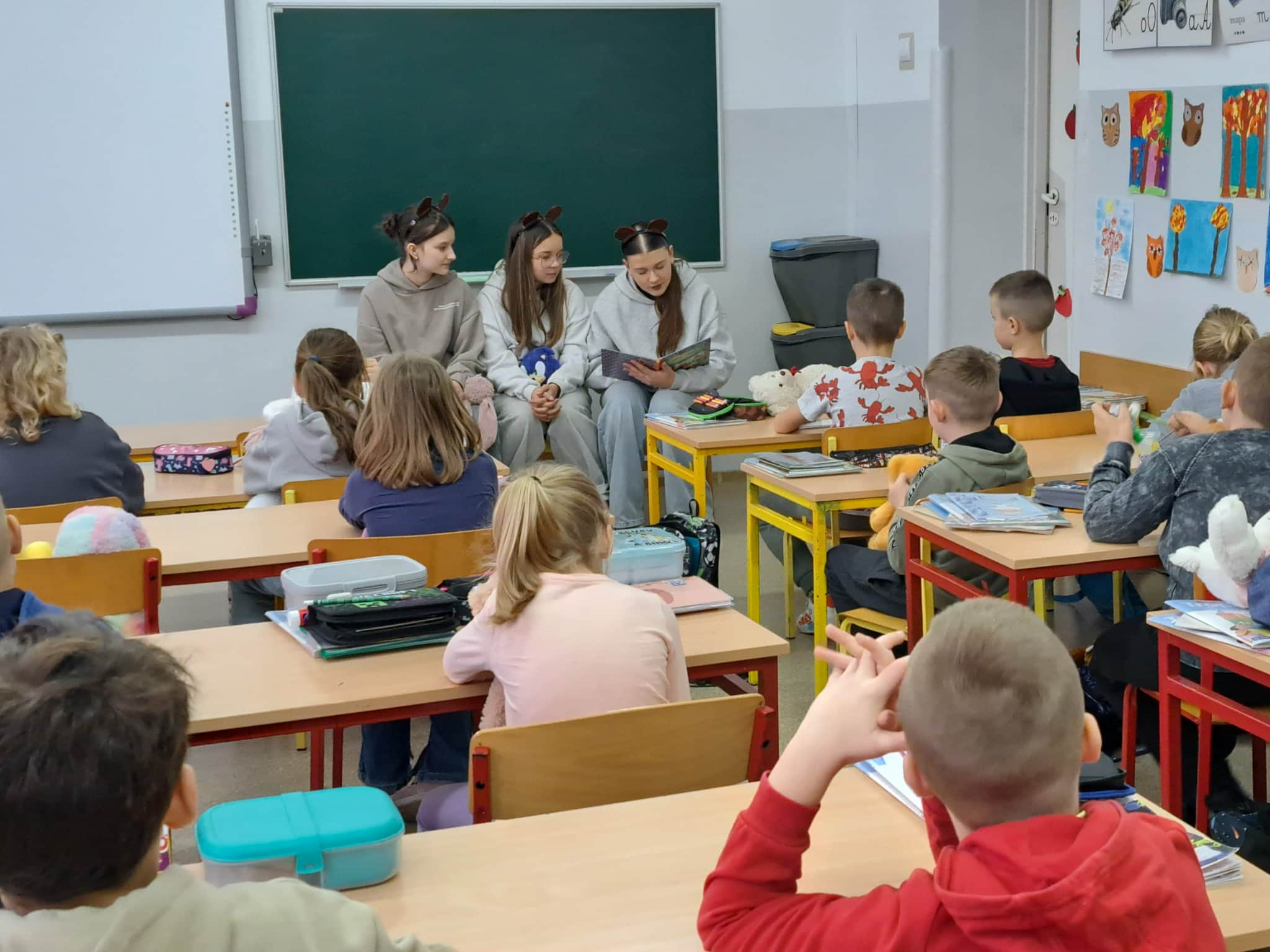 W tym dniu uczennice z klasy 8a przeczytały przedszkolakom z Tęczowej Akademii i pierwszoklasistom jedną z przygód Kubusia Puchatka.