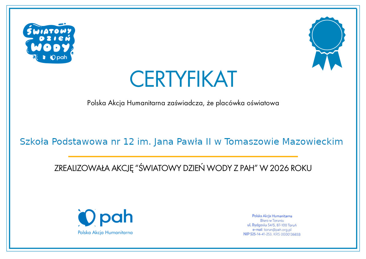 Uczniowie klasy 7a i 7b w poprzednim tygodniu uczestniczyli w „Światowym Dniu Wody z PAH”. W ramach akcji mieli tematyczne lekcje, potem część uczniów promowało ten temat w innych klasach.