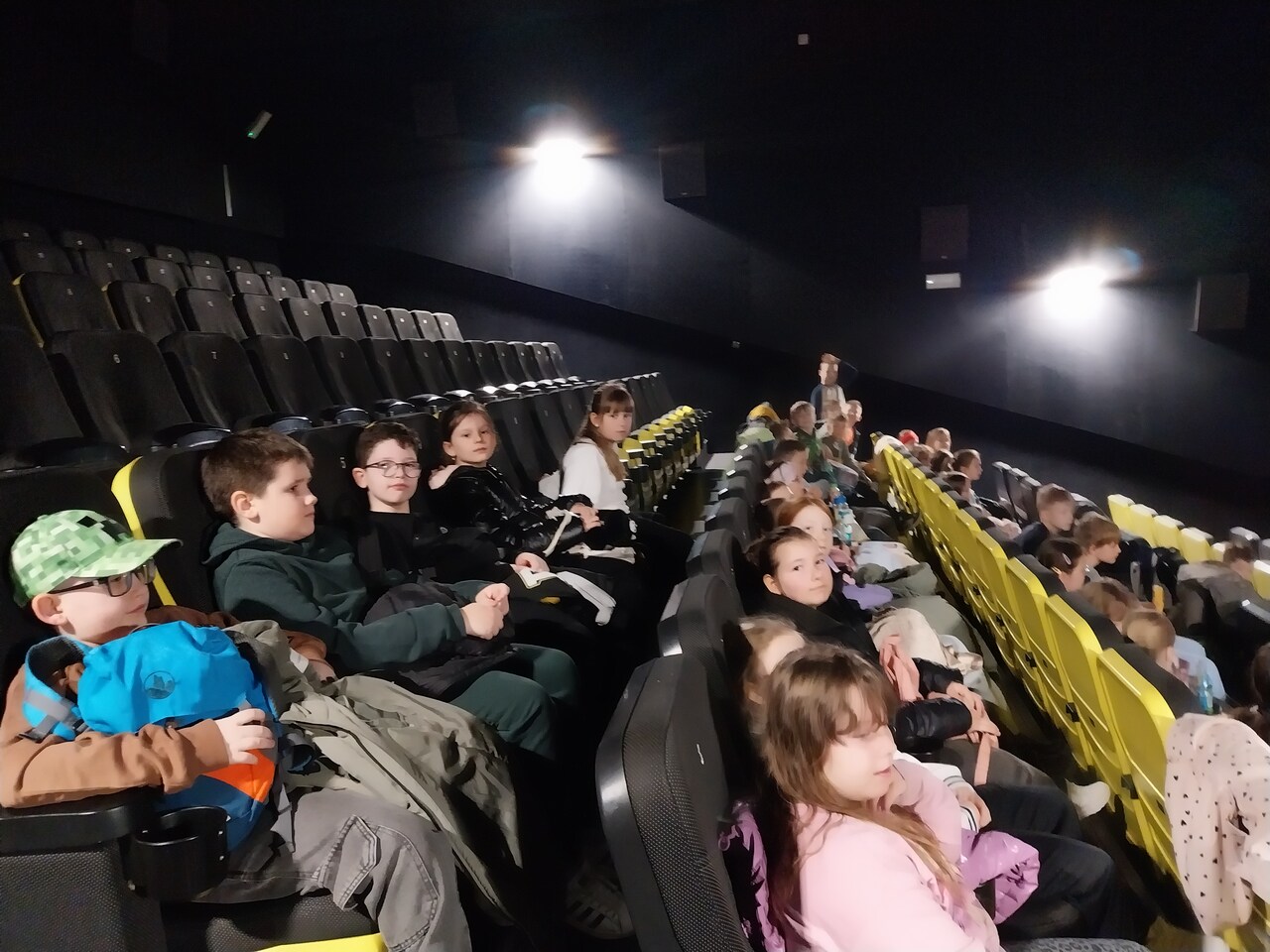12. marca 2026 r. uczniowie klas 2 a i 3 a wybrali się do kina Helios na film pt. „Za duży na bajki 3”. Projekcję filmu poprzedziła prelekcja pt. „Dorastanie – czas zmian i wyzwań w świecie online”, dzięki której dzieci dowiedziały się, jak reagować na hejt i cyberprzemoc, gdzie szukać pomocy oraz że proszenie o pomoc to siła, a nie słabość. Wspólna wycieczka sprawiła im wiele radości.