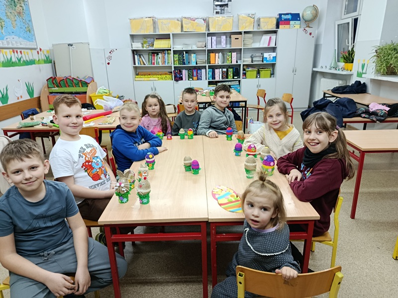 Wkrótce Wielkanoc. 18 marca wychowawczyni klasy 1a, pani Jolanta Piątkowska zorganizowała warsztaty plastyczne dla uczniów i rodziców. Dzieci samodzielnie oraz z pomocą rodziców wykonali piękne, kolorowe pisanki - owijanki. Kolorowe jajka będą elementem świątecznej dekoracji pracowni.