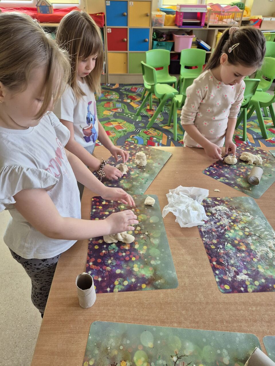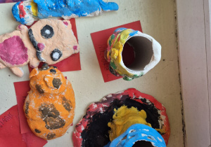 Dzieci samodzielnie przygotowały masę solną, z której ulepiły różne ciekawe figurki. Po kilku dniach, gdy prace dobrze wyschły, przyszedł czas na ich kolorowanie. Powstało wiele barwnych i wyjątkowych dzieł, a przy tym było mnóstwo radości i kreatywnej zabawy.